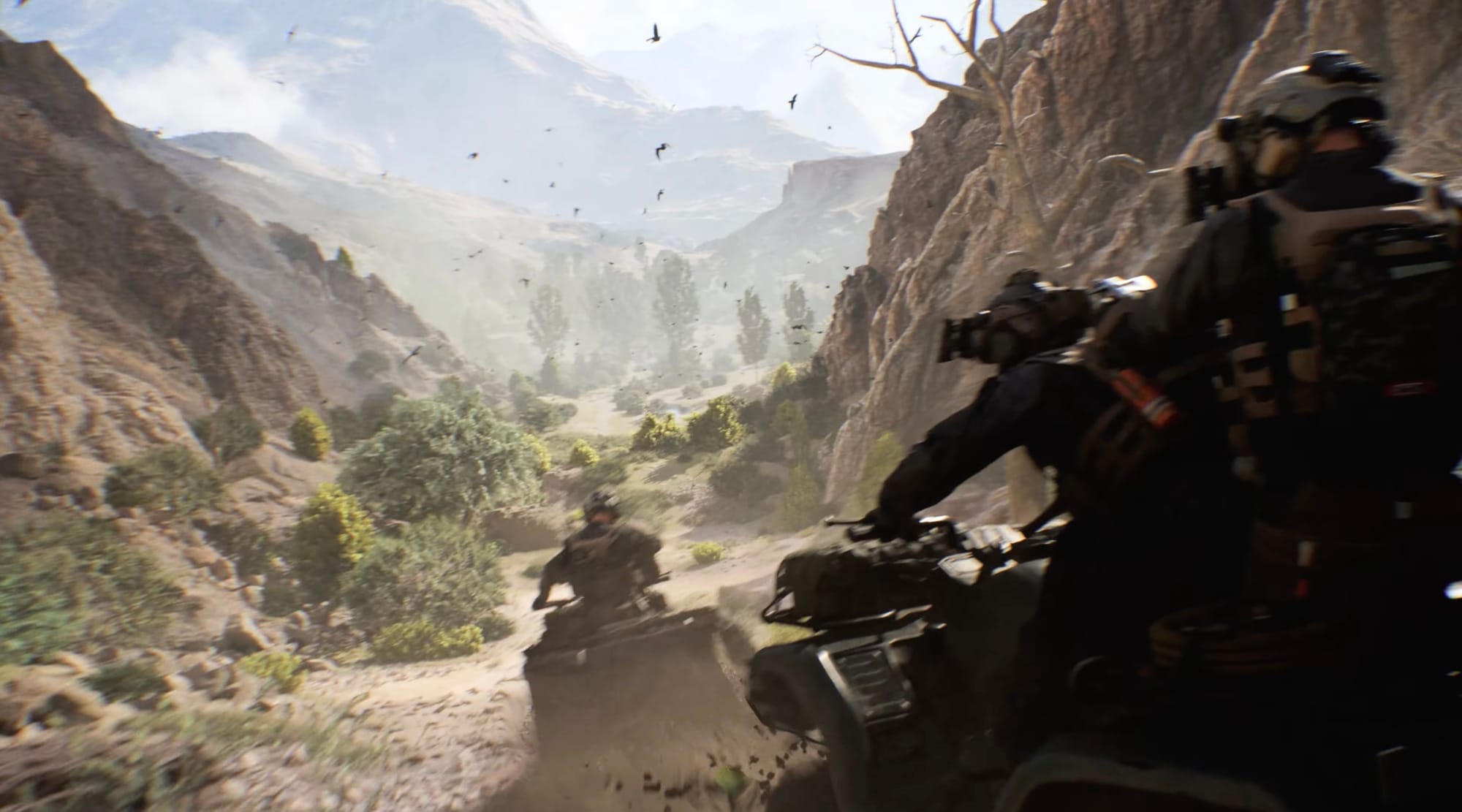 Dagger squad can be seen driving on quad bikes through a valley, likely en route to the dam that is struck by missiles.