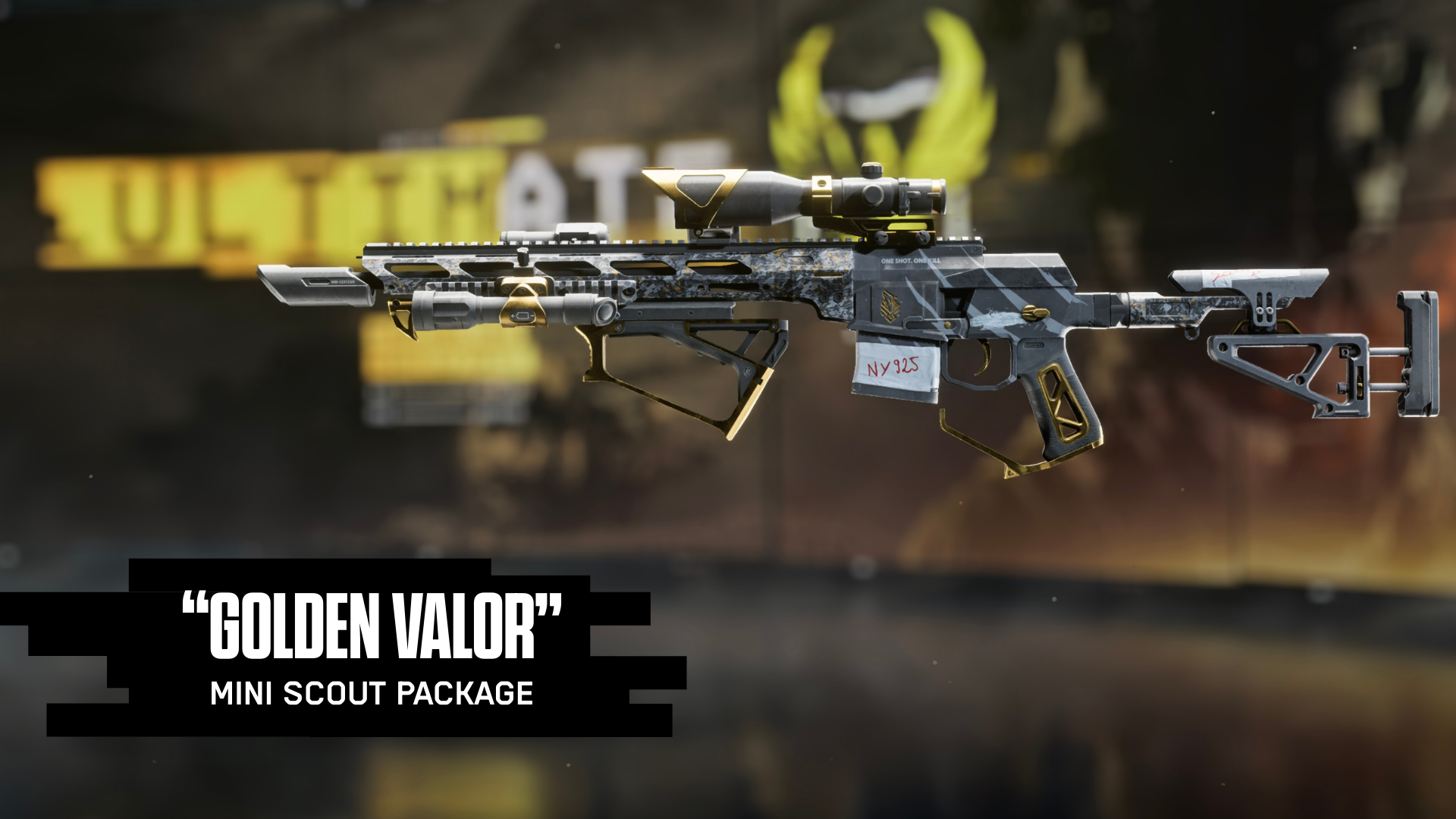 Tier 02: "Golden Valor" Mini Scout Package: A weapon styled for the unshakeable combatant who has earned their stripes.
