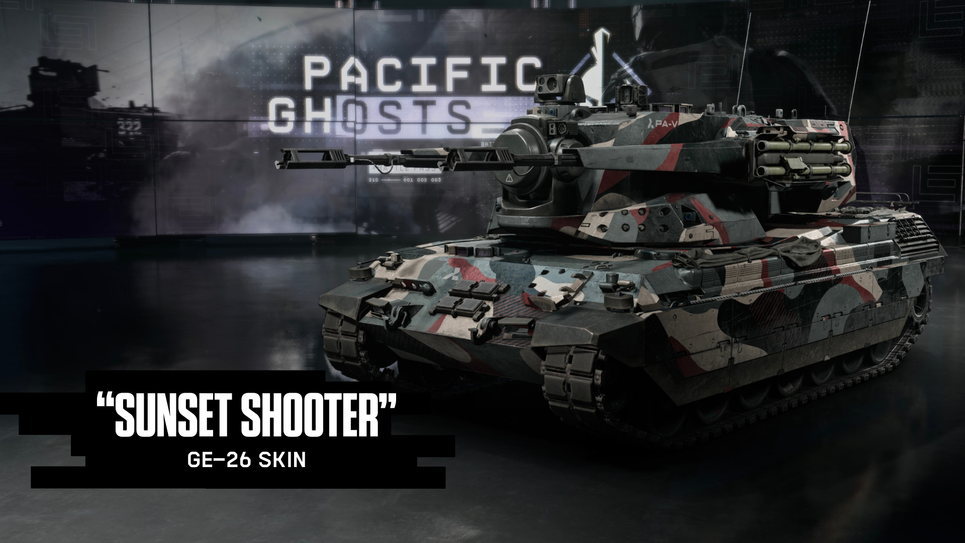 Tier 14: "Sunset Shooter" GE-26 PAX Skin (FREE): A tank styled to wreak havoc on city streets.