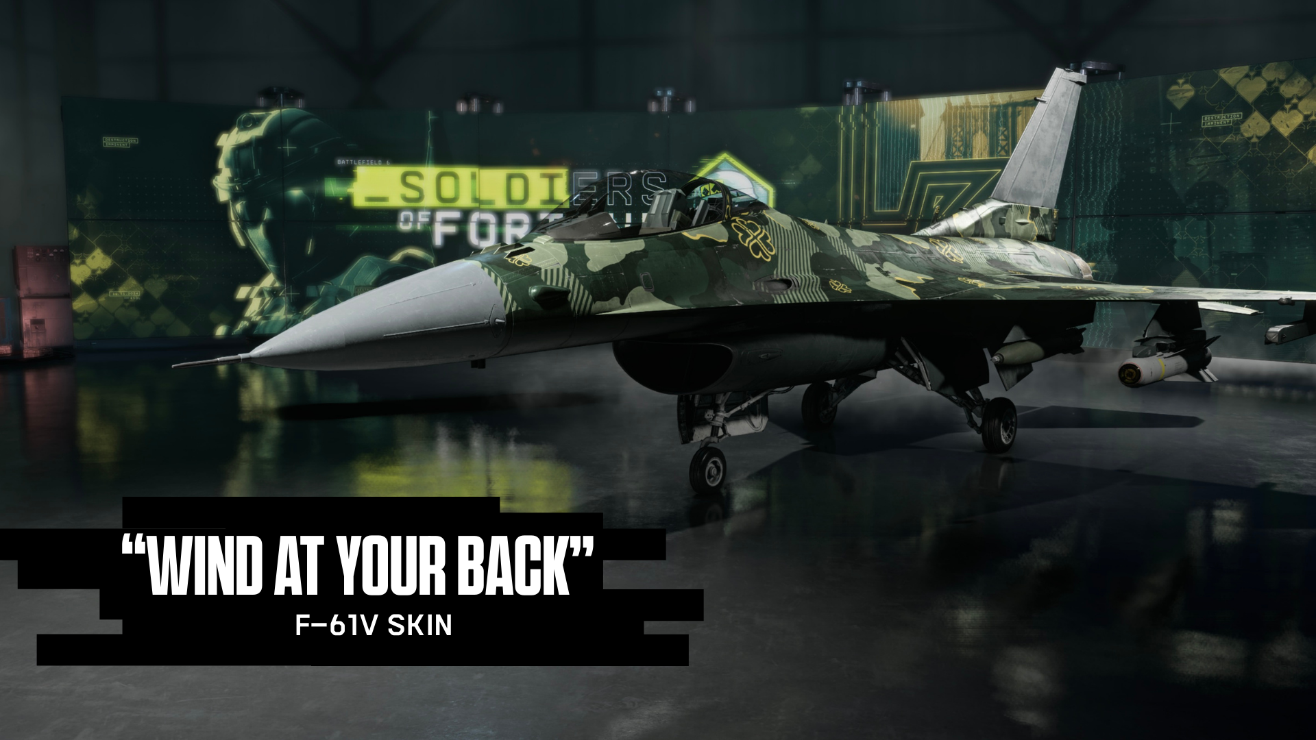 Tier 04: "Wind at Your Back" F-61V Skin: An airplane styled to keep the balance in your favor.