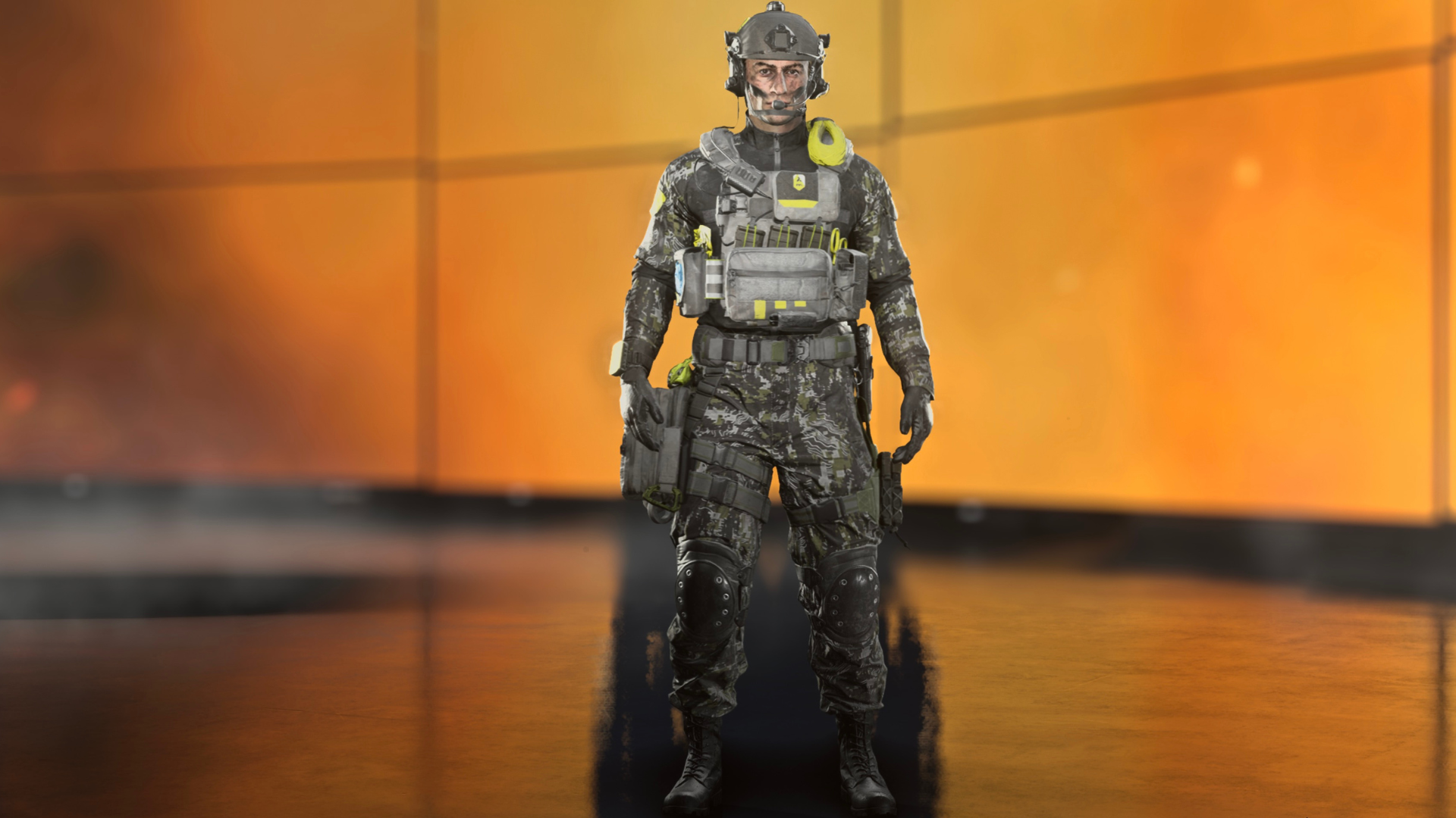 Tier 05: "Limited Hangout" Assault Skin for Kahina Unité's Gideon Ofori: A kit for getting in, executing the enemy, and getting out.