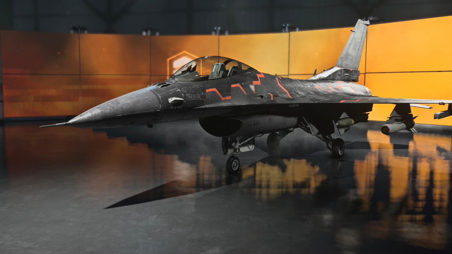 Tier 14: "Sly Hunter" F-97 Kestrel Skin (FREE): An airplane styled to pick off weak prey.